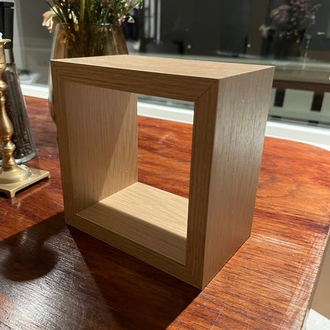 Hyller fra Bohus. Henges enkelt på vegg. Den ene har tapet og den andre malt inni. Kan enkelt fornyes.