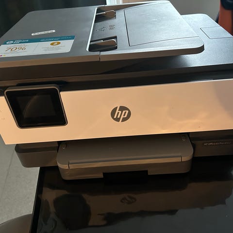 Selger en pent brukt HP OfficeJet Pro 8022e multifunksjonsskriver. Dette er en effektiv og smart skriver som passer perfekt for hjemmekontoret eller små bedrifter. Den kan skrive ut, skanne, kopiere og fakse.