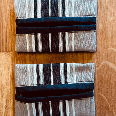 Hjemmesydd etui til oppbevaring av lommetørklær. Sydd i bomull. Har flere for salg, se mine andre annonser også. Praktiske å ha liggende i vesker, bagger, i bilen, på jobb osv. Prisen er pr stk. Fine gaver som kommer til glede og nytte.