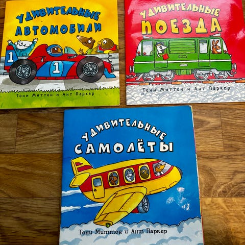 Barnebøker på tysk: "Alles über die Eisenbahn" og "Mein erster Flug ...allein!".