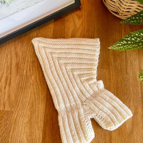 Håndstrikket lue mel hals