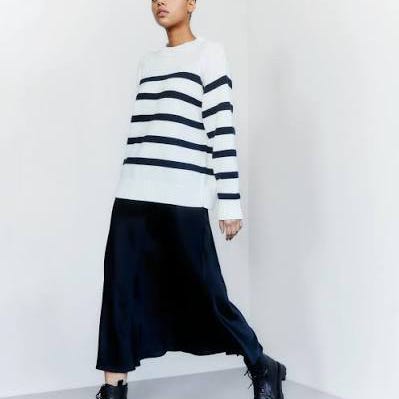 Julie Josephine: marineblå høyhalset i ribstrikk