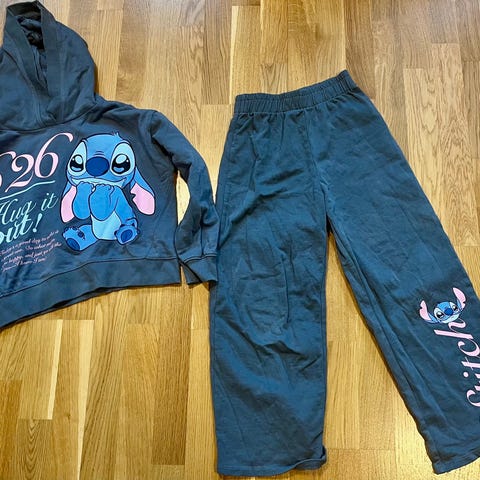 Zara Hello Kitty joggedress/sett i størrelse 148. Sett med hettegenser og bukse i blå farge. Hettegenseren har stor Hello Kitty-print foran og motiv på ryggen, med ribbekanter ved ermer og nederkant. Buksen har strikk i livet og Hello Kitty-detalj på hoften.