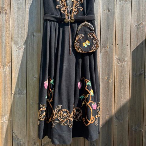 Som ny , svart frafjord bunad selges med sølv. Brukt fire ganger. Enkel bomullskjorte kan følge med om ønskelig.