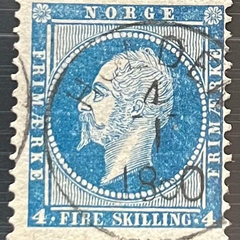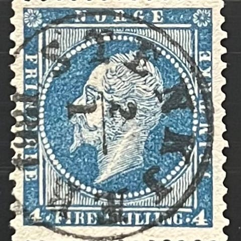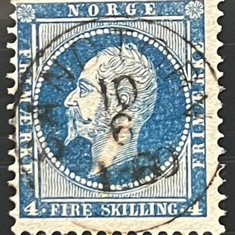 4 skilling Oscar 1856 stempler, nk 4b, pent fullstpl. Røraas 6.4.1864