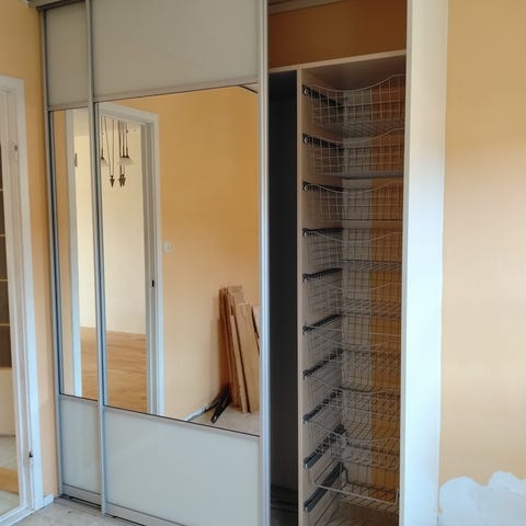 Pent brukt garderobe. Dører, skinner og sideforing +foring mot himling inkludert.