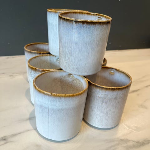H&M Home krus i keramikk med grafisk fuglemotiv i flere farger. Krusene har hank og glatt, hvit innside. Passer til servering av varme og kalde drikker på kjøkken eller spisebord. Leveres som sett med flere like krus, alle merket H&M Home under bunnen.