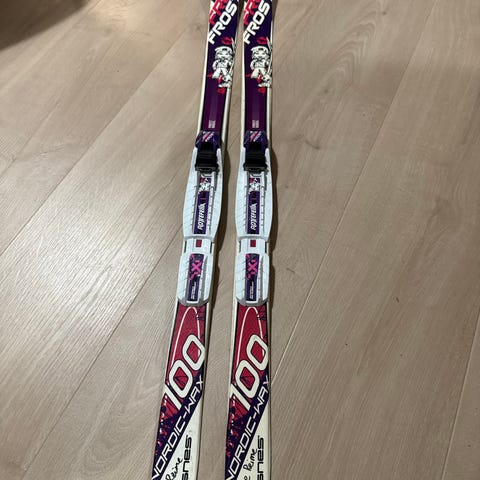 Madshus Frost V3 langrennsski med lengde 130 cm. Skiene har lett kjerne (lightweight core) og er beregnet for klassisk langrenn. Fargekombinasjon med hvit, lilla og sorte detaljer. Passer som barneski eller juniorski til bruk i preparerte løyper. Bindinger er montert på skiene, type ikke spesifisert i informasjonen på bildene. Come ready waxed!