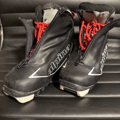 Alpina langrennsstøvler for barn. To par støvler i ulike farger.