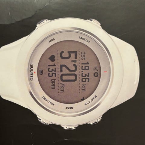 Suunto Ambit3 Run pulsklokke i blå farge. Klokken har rund skjerm med digitalt display og silikonreim med tradisjonell spenne. På baksiden finnes lade- og synkroniseringskontakter. Leveres med USB-ladekabel slik det vises på bildene. Egnet til løping og annen trening der man ønsker å registrere tid og aktivitetsdata.