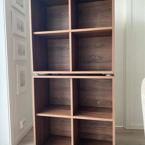 Kan brukes som en del av en større kombinasjon eller som en selvstendig hylle/sidebord/nattbord med eller uten ben.
