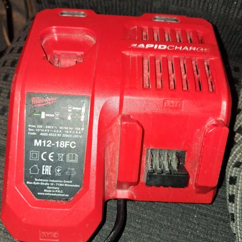 Milwaukee batterilader i rød farge c12c 12 volt milwaukee lader