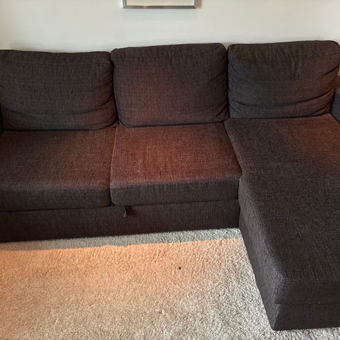 Sovesofa gis bort mot henting. Godt brukt, men kan fortsatt brukes fint. Kan dras ut. Trenger en vask.