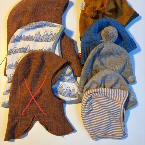 2 st balaklava i ull, en tykk fra bruse (litt liten i størrrlsen) og en tynn fra Reflex.