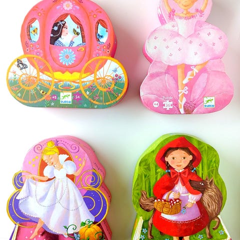DJECO puslespill med 36 ekstra store og solide brikker - til barn fra ca 4 år - med motiv og eske formet som Askepott. Puslespillet er pent som nytt og har ingen skader eller slitasje.