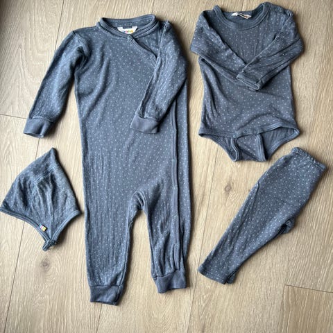 Klespakke med body i bomull str. 92 unisex 💙🩶