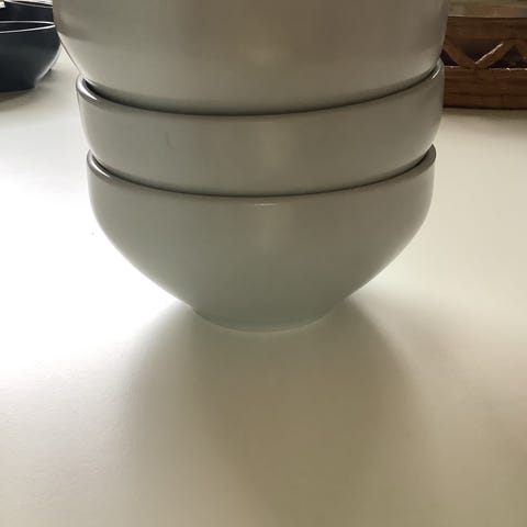Alle tallerkenene har noe misfarge etter bestikkbruk i overflateglassur ellers fri for hakk og skader