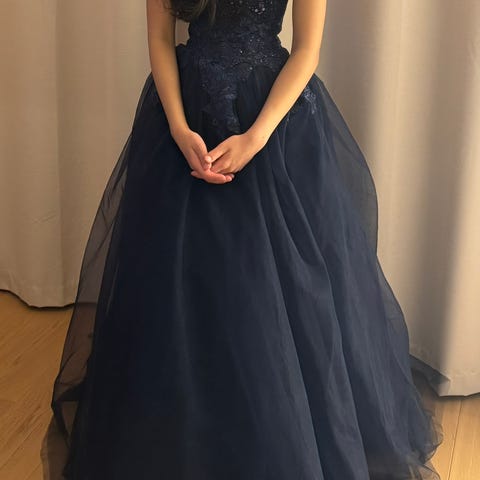 Nydelig ballkjole, kjøpt ny og kun brukt en gang. Str 32 (xxs), men har justering i rygg så passer til S-M også. Jenta som brukt den er 166 lang. Det følger med underskjørt.