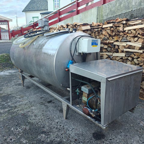 Ukjent merke rister i metall, fjøs utstyr, melketank 900l vire motor til renner
