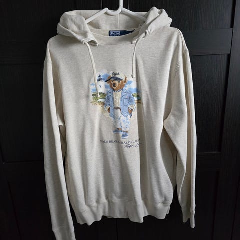Ralph Lauren Polo Bear hettegenser herre M bomull beige