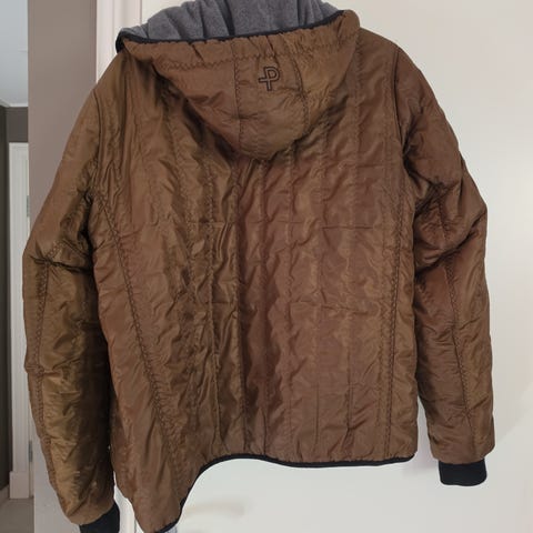 Brando London vinterjakke for herre i størrelse L. Jakken er grå med lys, myk fleecefôr på innsiden, kragen og i ermene. Modellen har glidelåslukking foran, sidelommer med glidelås og justerbare spenner nederst i siden. Yttermaterialet har et semsket skinn-aktig uttrykk, mens innsiden er helfôret i tykk fleece for ekstra isolasjon. Passer som varm ytterjakke i den kalde årstiden.