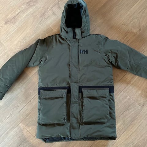Helly Hansen vinterjakke selges. Har en synlig svart flekk foran, se bildet. Litt misfarget ytterst på armene etter bruk. Ingen hull.
