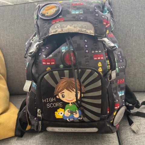 Naf Naf ryggsekk unisex i mørkeblå med flerfarget brodert logo og små mønstre. Sekken har toppåpning med snøring og lokk som lukkes med plastspenner. Polstrede skulderstropper gir bedre bærekomfort. Flere utvendige lommer med glidelås gir ekstra oppbevaringsplass til mindre gjenstander. Egnet til hverdagsbruk, skole eller fritidsaktiviteter. Kr 50. Kun stått i en bod noen år med klær oppi. Kan sendes evt avtale overlev Oslo