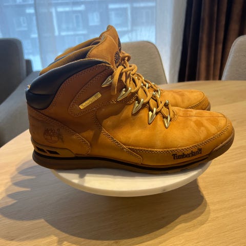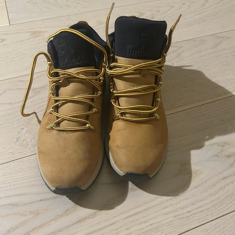Timberland støvler i størrelse 42. Modellen er ankelhøy med snøring og kraftig yttersåle. Fargekombinasjon brun og svart med kontrastfarget innside. Passer til hverdagsbruk og tur i variert terreng.