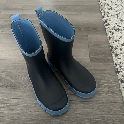 Ukjent merke barnestøvler i størrelse 34 i svart farge. Støvlene har høy skaft og er egnet for bruk i vått vær og på fuktig underlag. Passer til barn som bruker skostørrelse 34.