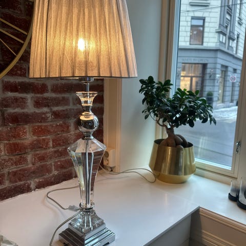 Lampe med koselig lys, laget i stengods. Plugges i stikkontakt, og har bryter festet på ledningen. Praktisk liten lampe som passer de fleste steder!