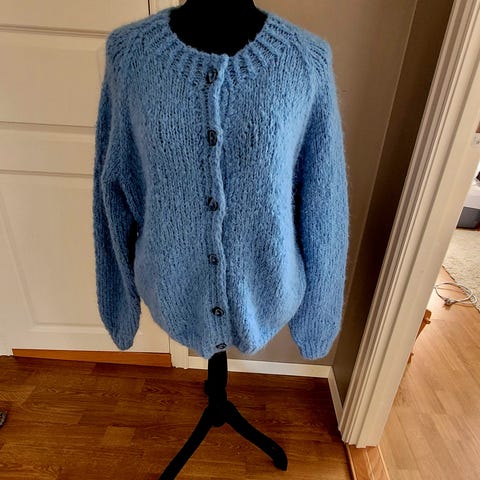Ny Jean Paul Adele Cardigan str. L kjøpt på Match. Fargen er slik babyblå. Finer enn på bildet for eg har dårligt kamera. Har dessverre tatt av lappene.