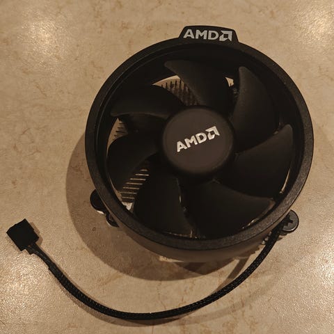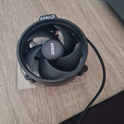 AMD CPU-kjøler med integrert vifte. Luftkjøler med rund vifte på toppen og ribbet kjøleribbe i aluminium under. Strømtilkobling via 4-pins vifteplugg. Passer til AMD-prosessorer som bruker denne typen standard kjøler med fjærbelastede skruer for montering på hovedkortet. Egnet som erstatningskjøler eller til enkle stasjonære PC-bygg der luftkjøling er tilstrekkelig.