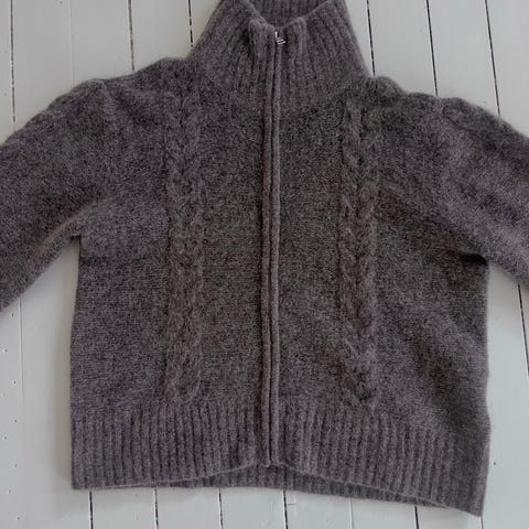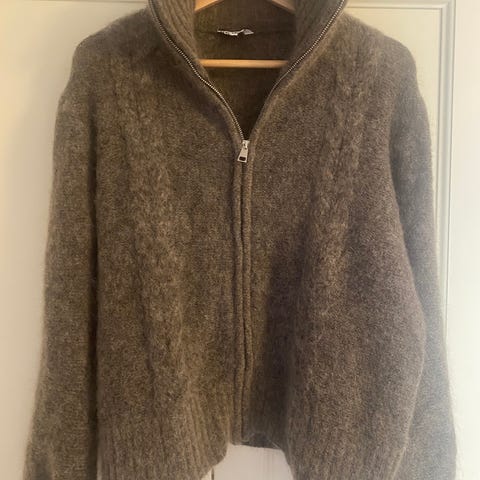 Superfin ull zipjakke fra Object❤️kun brukt et par ganger og fremstår som ny! Nypris: 1300,-🥰passer fint en small også! 32% mohair, 32% ull, 30% nylon