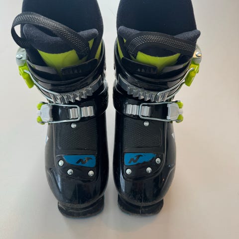 Nordica Team skistøvler for barn i svart med blå og grønne detaljer. Modellen har to justerbare spenner i metall/plast og polstret innerstøvel for komfort. Sålelengde er merket 235 mm, og støvlene passer til alpinski med kompatible bindinger. Egnet som alpinstøvler til barn på ski i bakke.