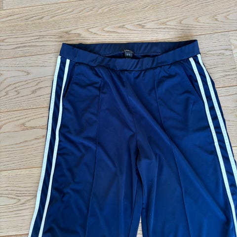 Juicy Couture joggebukse for dame i størrelse 36. Buksen er blå med kontraststriper langs sidene. Materialet består av polyester med noe elastan for stretch og bevegelighet. Elastisk linning i livet gir en komfortabel passform. Egnet til hverdagsbruk og avslappede aktiviteter.
