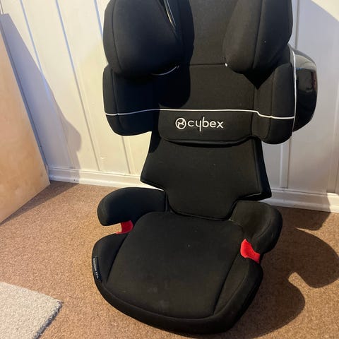 Cybex barnesete i størrelse 36 i svart farge. Setet har høy rygg med justerbar hodestøtte. Det er utformet for bruk fremovervendt og festes sammen med bilens setebelte eller isofix fester.