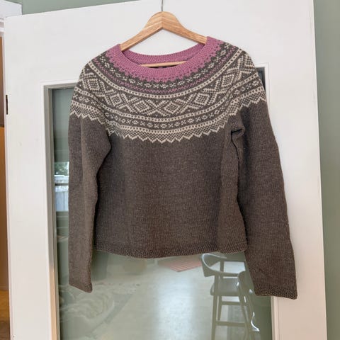 Hjemmestrikket mariusgenser i merinoull. Pent brukt. Selges fordi jeg har andre gensere jeg bruker mer. Usikker på størrelse, da den er strikket på mål.