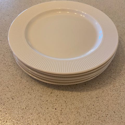 240kr for 12 tallerkner. Hele tallerkner, kun slitasjemerker av vanlig bestikkbruk.