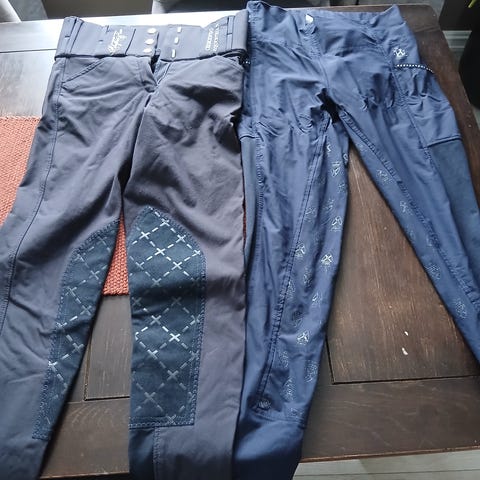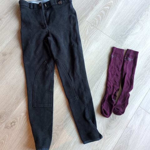Ridebukse i svart farg, str 38, helforsterket med ekstra stoff på innsiden av bena og setet for bedre grep i salen. Smal, ettersittende modell med beltehemper i livet og glidelåslomme foran. Egnet for dame/ungdom til bruk i stallen og ved ridning.