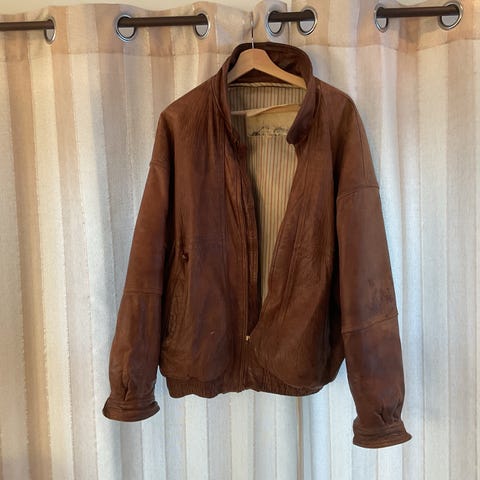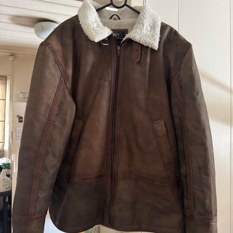 Mørkebrun semsket jakke med lammeskinnsfôr fra Maddox, størrelse 52
