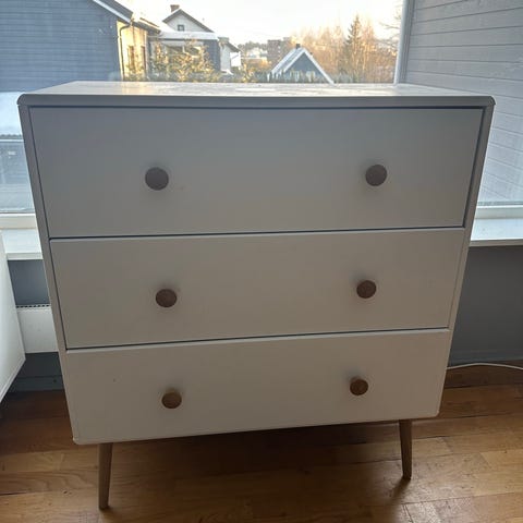 Selger en stilren Mino kommode (41x40 cm) i flott stand. Den er moderne, estetisk og plassbesparende, og passer perfekt i gang, soverom eller barnerom. Gir overraskende mye oppbevaring til å være så kompakt.