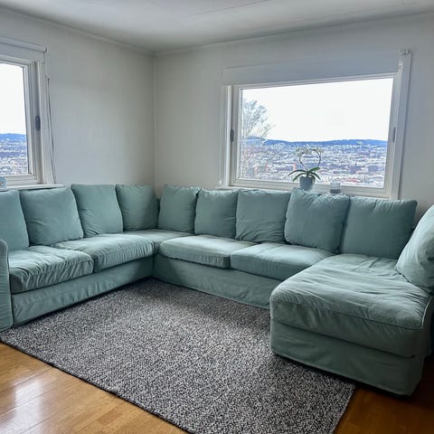Sofaen/sovesofaen fra Sovesofaspesialisten har stått på ett gjesterom og er lite brukt. Den er nydelig i fargen en varm blå.