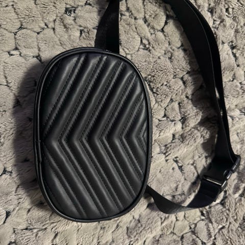 Svart rumpetaske i «skinn».