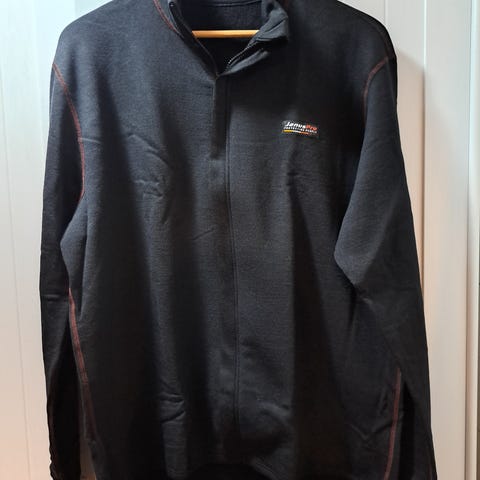 En Musto slitesterk allværsjakke til salgs. Rød Primaloft fôr på innsiden med to hetter. (En for regn og en for varme) Pent brukt.