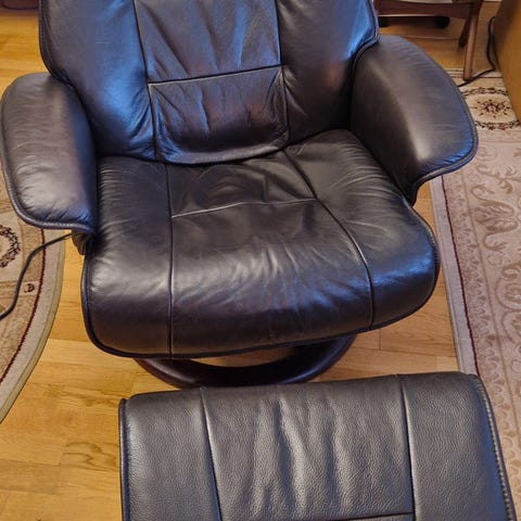 Ekornes Mayfair (Medium) – Svart skinn, Classic understell.