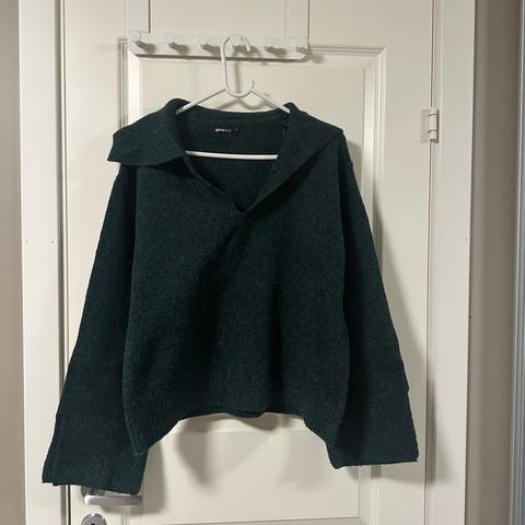 Gina Tricot genser for dame i størrelse M. Genseren er grå og laget i akryl 50%, polyamid 32% og polyester 18%. Den har rund hals, lange ermer og ribbestrikkede kanter nederst, i ermelinningene og i halsen. Passformen er rett og noe romslig, egnet til hverdagsbruk og kan kombineres med blant annet jeans eller bukser.