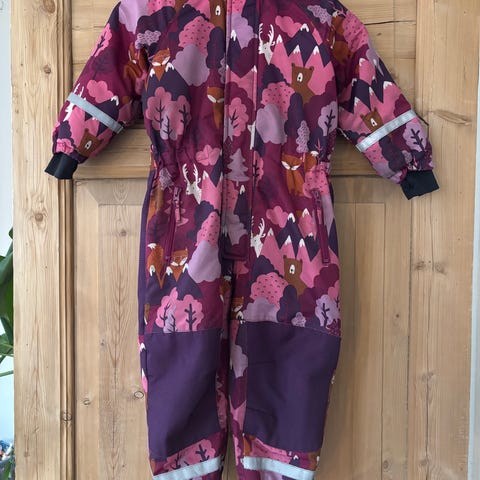 Varm og god vinterdress fra Reima / Reimatec, i størrelse 86. Litt stor i størrelsen, slik utedress ofte er. Passet min datter da hun var 2 år. Litt slitasje på rumpa (se bilder), men ingen hull.