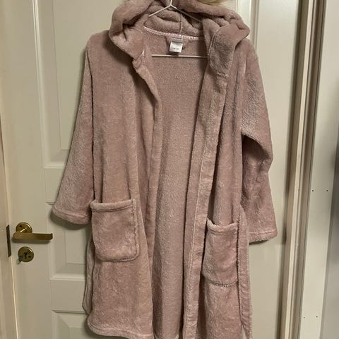 Myyk badekåpe i frotté med hette. Badekåpen er i størrelse 2 (M) og har belte i livet samt lommer foran. Fargen er pistasjgrønn. Kun brukt en vask. Utsolgt på nett, men ny pris er 1500 kr
