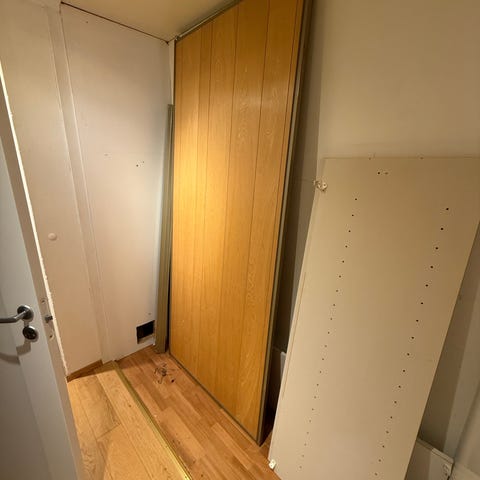 Garderobe seg lik ut men har 3 dører fra vegg til vegg