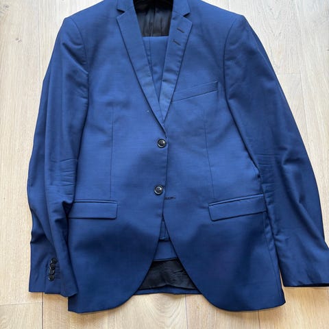 Tiger of Sweden dress i størrelse 40Jakken er blå og laget i ull. Klassisk modell med to knapper i front, brystlomme og klaffelommer. Fôret innside med innerlommer. Sett med jakke+buks. Fin stand men trenger rens.